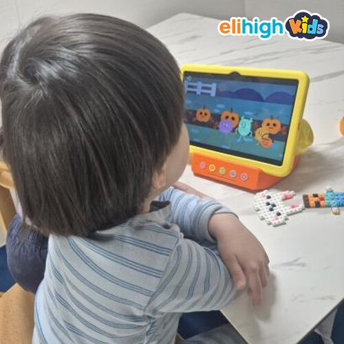 “태블릿이 새 제품으로 제공되는 점이 좋았고, 엘리하이 키즈 캐릭터 모양의 귀여운 거치대는 블루투스 스피커 역할도 해서 음악이나 동화를 들려줄 때 활용도가 높았어요. 그리고 디지털 학습과 연계된 지면 교재가 있으니 아이가 더 집중력 있게 공부했어요. 태블릿에서 배운 내용이 지면 학습지에 그대로 있으니까 ‘이거 봤던 건데! 내가 해볼래!’ 하며 자연스럽게 학습지를 풀더라고요.”