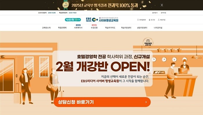 교육원 관계자는 “그동안 EBS미디어사이버평생교육원은 사회복지학 학위과정을 중심으로 원격교육을 운영해 왔으며, 이번 호텔경영학 인가는 원격교육으로는 처음 시도되는 전공 영역이라는 점에서 의미가 크다”며 “학습 환경의 한계를 넘어, 성인 학습자의 학위 취득과 진로 설계를 함께 지원하는 전환점이 될 것”이라고 말했다.