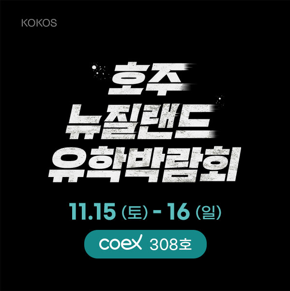 호주&뉴질랜드 전문 ㈜코코스유학이 오는 11월 15일(토)부터 16일(일)까지 양일간 서울 코엑스 3층 308호에서 호주 & 뉴질랜드 유학박람회를 개최한다.