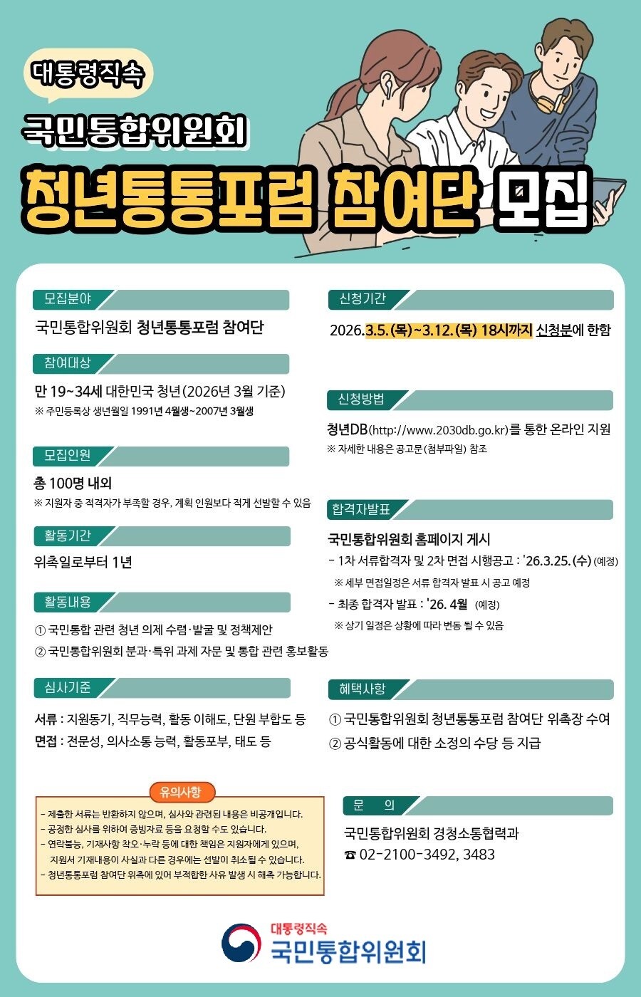 | ▲국민통합위원회 「청년통통포럼」참여단 공고 포스터 |