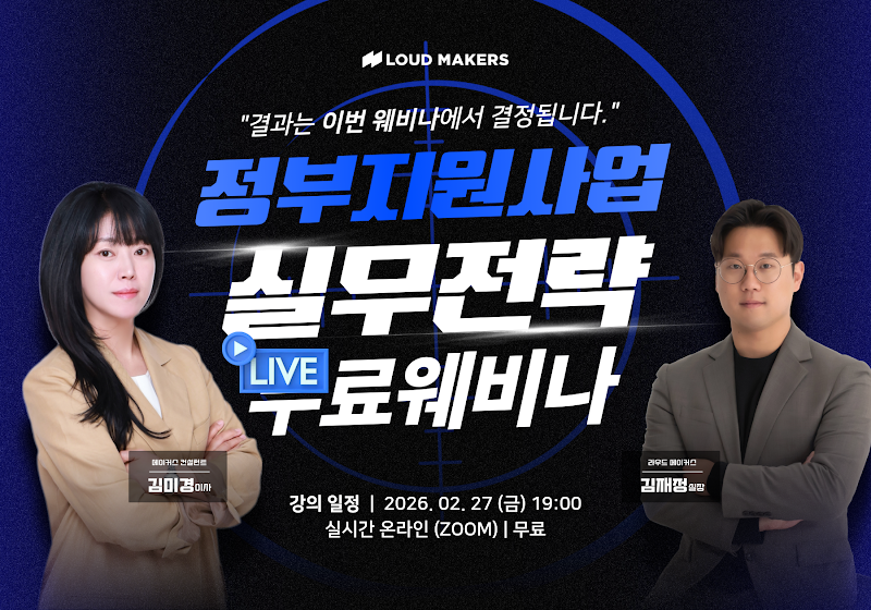 강의는 12월부터 진행된 라우드 메이커스 웨비나 시리즈에서 꾸준히 높은 참여와 호응을 얻은 김미경 이사와, 2025년 한 해 동안 20억 원 이상의 정부지원사업 수행을 총괄한 김재정 실장이 맡는다. 두 연사는 현장에서 직접 축적한 경험을 바탕으로, 이론보다는 실제 사례 중심의 내용을 전달할 예정이다.