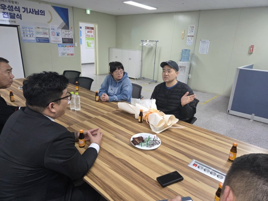| ▲쿠팡파트너스연합회(CPA) 관계자들이 제주캠프에서 화재 초동 진압 공로로 감사패를 받은 천상로지스틱스 소속 우성식 기사와 함께 당시 현장 상황과 새벽 배송의 사회적 역할에 대해 의견을 나누고 있다. / 제공: 쿠팡 파트너스 연합회(CPA) |
