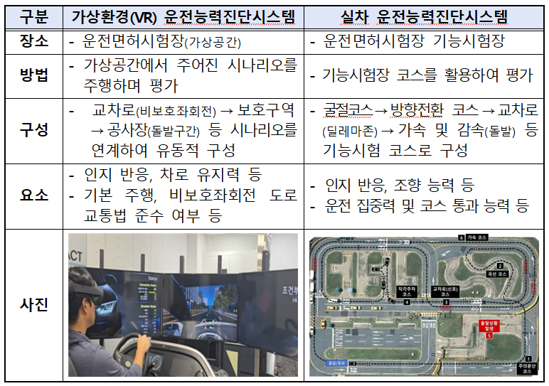 실차 기반 시스템은 서울 강서운전면허시험장에 설치됐으며, 가상환경 기반 시스템은 서울 강서·도봉·서부 등 전국 19개 시험장에서 운영된다.